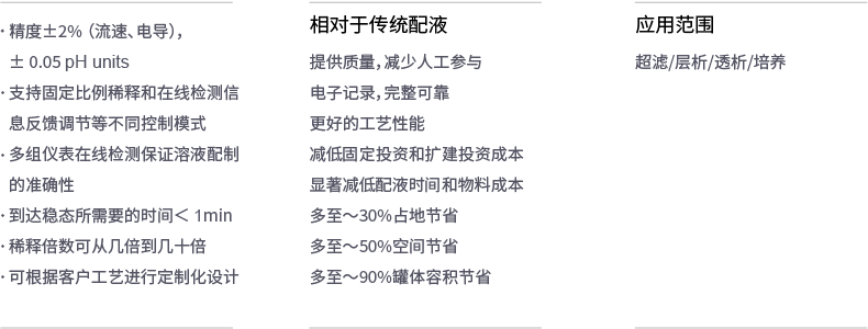便捷 減少儲液罐占地面積,現用現配,配液,層析同時進行,配液過程全程記錄